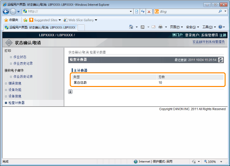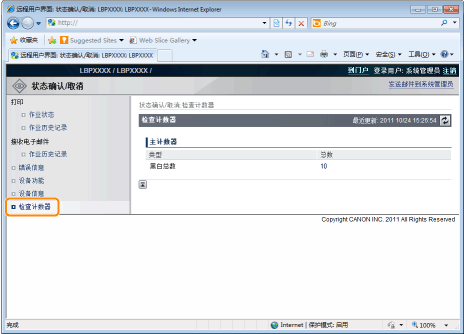 可使用远程用户界面检查已打印页数。