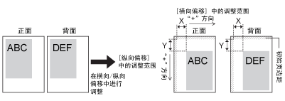 可调整区域可在 -50.0 mm 到 +50.0 mm 的垂直方向和水平方向范围内调整打印位置。