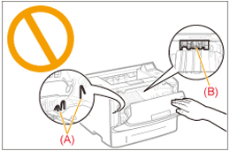 请勿触碰高压触头 (A) 或电触头 (B)。否则可能会损坏打印机。