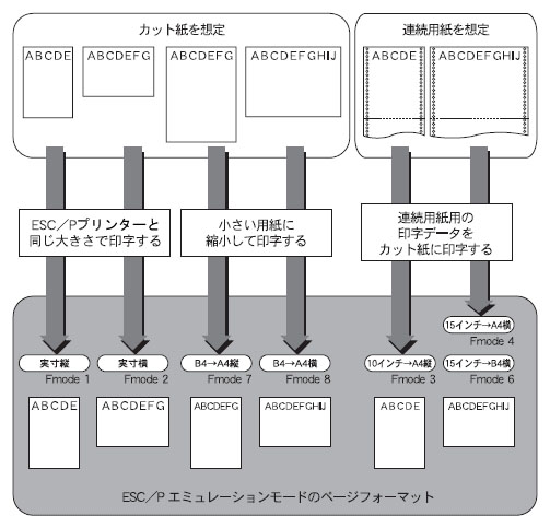 連続用紙に対応するページフォーマットは、印字データを縮小して印字します。