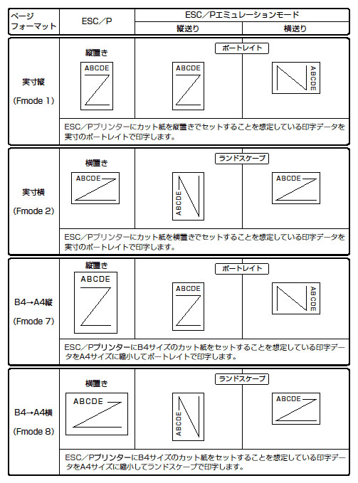 「×」印になっているページフォーマットと用紙サイズの組み合わせでは、印字不可能または印字データが欠落する場合があります。