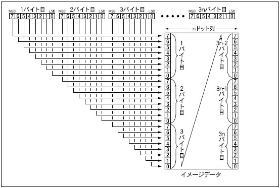 ESC *[印字モード(1バイト)] <ドット数(2バイト)> (イメージデータ)
