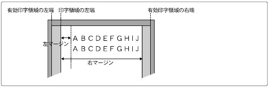 右マージン位置が左マージン位置よりも右側にない場合、本制御命令は無視されます。また、右マージンと左マージンの間隔が1文字幅に満たない場合でも、1文字は印字されます。