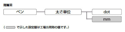 グラフィックス・プロッターの8種類のペンに対応する線の太さを設定する場合に使用する単位を選びます。