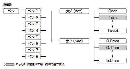ただし、0.0mmを設定すると解像度に関係なく0.1mmの太さになります。0dotを設定すると解像度に関係なく1dotの太さになります。
