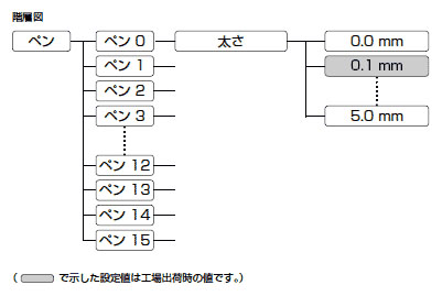 グラフィックスプロッターの16種類のペンに対応する線の太さを設定します。