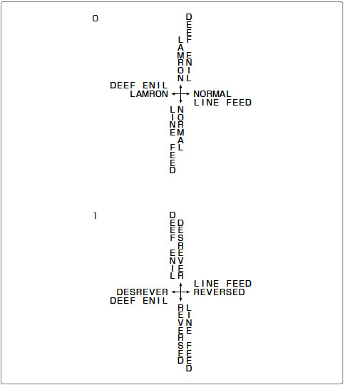 DIまたはDR命令で指定された文字プロット方向を中心とし、改行する方向を指定します。