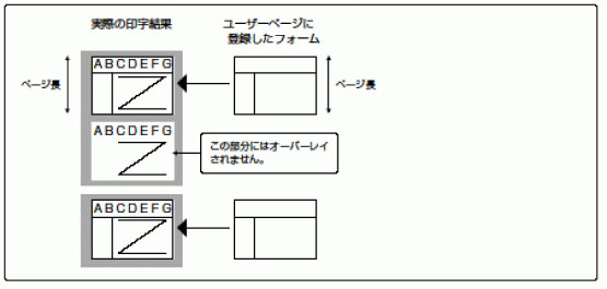 したがって、ページ長を短く設定して1枚の用紙に複数のページを確保した場合は、フォームは用紙単位でしかオーバーレイされません。