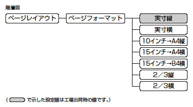 A3、B4、A4、B5、A5、はがきサイズの用紙をPC-PR201/80Aに横置きでセットして印字するデータを2/3の大きさに縮小してランドスケープで印字します。ページレイアウトグループの「用紙サイズ」では、縮小率を考慮して、縮小した印字データが印字できるサイズの用紙を設定します。なお、アプリケーション側の用紙サイズの設定は、実際に印字する用紙サイズの1.5倍のサイズを設定してください。ただし、お使いの機種によって、使用できる用紙サイズの種類は異なる場合があります。