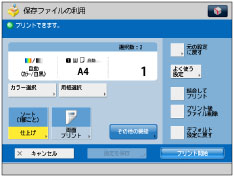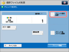 コンピューターから保存したファイルを保存時の設定どおりにプリントする場合は、プリント設定変更画面からプリントしないように注意してください。プリント設定変更画面からプリントすると、保存時の設定どおりにプリントされない場合があります。