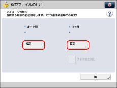 <ウラ面>を<オモテ面>と同じ設定にするときは、[オモテ面と同じ]を押します。
