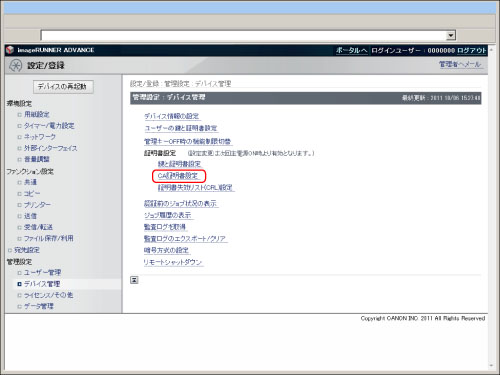 証明書失効リスト(CRL)をインストールする場合は、管理者としてログインする必要があります。