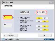 を長押しすると、ページ番号が増減し、キーを離した時点のページが表示されます。部門IDが大量に登録されている場合に、すばやく目的の部門IDを表示させることができます。|