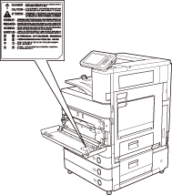 排紙直後の用紙は高温になっているときがあります。用紙を取り出す際、取り出した用紙を揃える際に低温やけどの原因になることがあります。