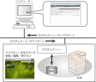 Webブラウザーから本製品にアクセスしてマイボタン/共有ボタンをエクスポート/インポートできます。
