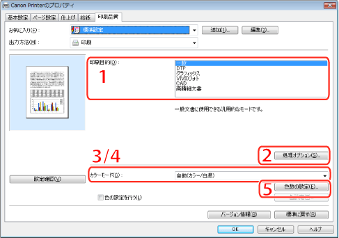 画面の表示方法については、「印刷する」または「あらかじめ印刷の設定をする」を参照してください。