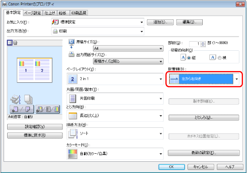 お使いのOS、プリンタードライバーの種類およびバージョンによって画面が異なることがあります。