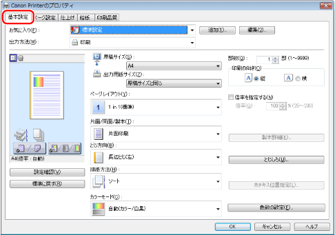 お使いのOS、プリンタードライバーの種類およびバージョンによって画面が異なることがあります。