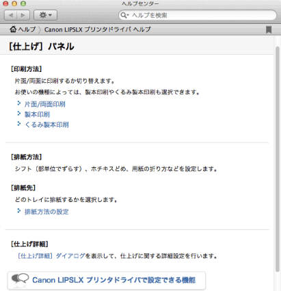 ヘルプには、すべての印刷機能について説明があります。本マニュアルに記載されていない機能の説明や設定方法を調べたいときは、ヘルプをご利用ください。