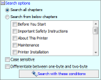 ![]() The search options can be used to specify the chapter to search, case sensitivity, and whether to differentiate between one- and two-byte characters.