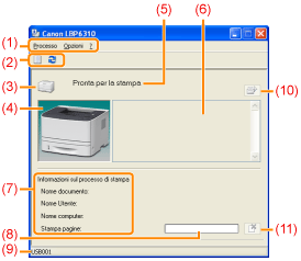 Consente di annullare un processo di stampa, riprendere un processo messo in pausa per qualche ragione durante la stampa e visualizzare la coda di stampa.