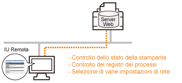 Utilizzando un computer da una posizione remota in una rete è possibile accedere alla stampante e inviare comandi tramite un browser.
