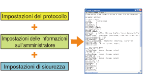 Accedendo al server FTP della stampante è possibile selezionare le impostazioni di rete, le impostazioni di protezione e altro ancora. Poiché le voci d'impostazione vengono elencate in un file è possibile specificare più voci contemporaneamente.