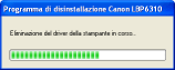 Attendere fino alla scomparsa della schermata seguente (la disinstallazione del driver della stampante potrebbe richiedere diverso tempo).