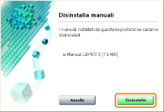 A questo punto disinstallare l'e-Manual attenendosi alla procedura descritta di seguito.
