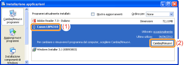 Dal menu [Start] scegliere [Pannello di controllo] e selezionare [Installazione applicazioni].