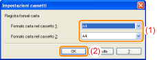 Quando si registra un formato cartaPoiché non è possibile registrare un formato carta quando è in corso la stampa, prima di registrare un formato assicurarsi che la stampante sia inattiva.