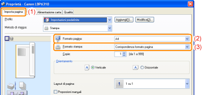 Selezionando un formato carta diverso da [Formato pagina] i dati di stampa vengono ingranditi o rimpiccioliti automaticamente.