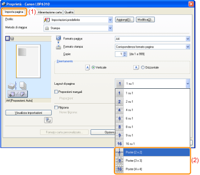 Selezionare [Poster [N x N]] (N = 2, 3, 4) da [Layout di pagina].