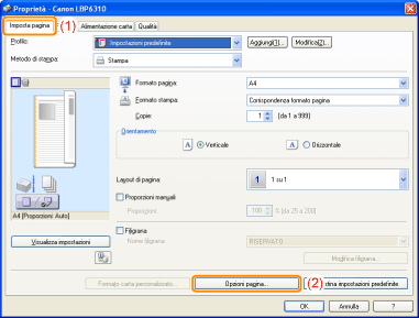 Fare clic su [OK]. Appare la scheda [Imposta pagina].