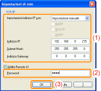 Inserire la password di amministratore per la stampante (la password specificata nell'IU Remota).