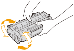 Agitare la cartuccia del toner cinque o sei volte come mostrato nella figura allo scopo di distribuire uniformemente il toner al suo interno.