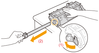 Porre la cartuccia del toner su una superficie piatta.