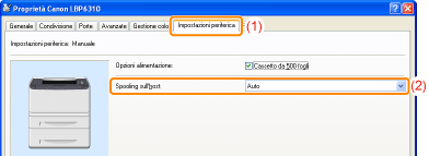 Se l'opzione [Spooling sull'host] (che prevede l'elaborazione dei dati di stampa all'interno del computer) è impostata su [Disabilitato], non sarà possibile modificare le impostazioni del driver perché alcune opzioni non saranno disponibili.