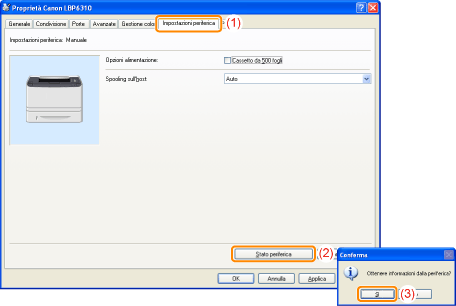Scegliere [Sì] per ottenere lo stato dell'alimentatore carta.