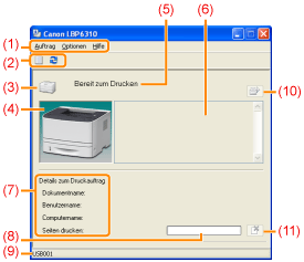 ] (Druckerwarteschlange)Zeigt die Druckerwarteschlange (eine Funktion von Windows) an. Nähere Informationen zur Druckerwarteschlange erhalten Sie in der Windows-Hilfe. [