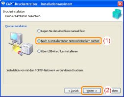Aktivieren Sie [Nach zu installierenden Netzwerkdruckern suchen].