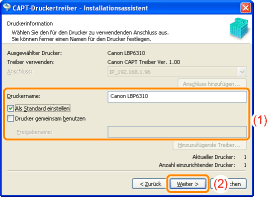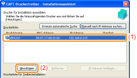 Fügen Sie [LBP6310] unter [Druckerliste für Treiberinstallation] hinzu.