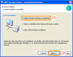 Wählen Sie [Legen Sie den Anschluss manuell fest].