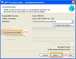 Wenn Sie den Drucker als Standarddrucker verwenden möchten, aktivieren Sie das Kontrollkästchen [Als Standard einstellen].