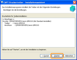 Wählen Sie einen freigegebenen Drucker auf dem Druckserver aus.