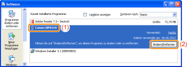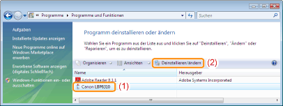 Klicken Sie auf [Deinstallieren/ändern].