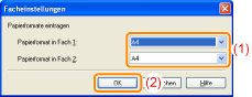 Wenn Sie ein Papierformat registrierenDa Sie während eines Druckvorgangs kein Papierformat registrieren können, vergewissern Sie sich vor dem Registrieren des Papierformats, dass der Drucker keine Vorgänge durchführt.