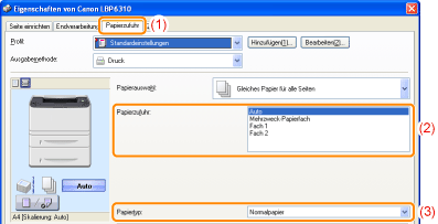 Geben Sie die Einstellung entsprechend dem Papiertyp folgendermaßen an.