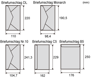 Beim Drucken auf Briefumschlägen verringert sich die Druckgeschwindigkeit.