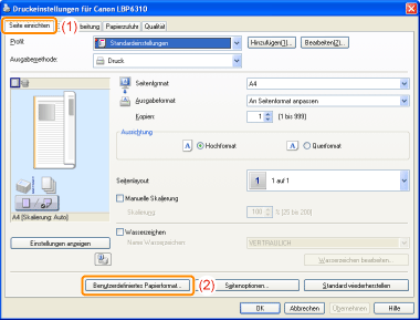 Klicken Sie auf [Benutzerdefiniertes Papierformat].
